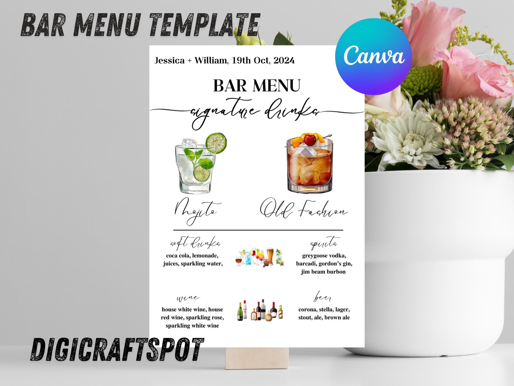 Editable Template Signature Drink Sign Template Bar Menu Template