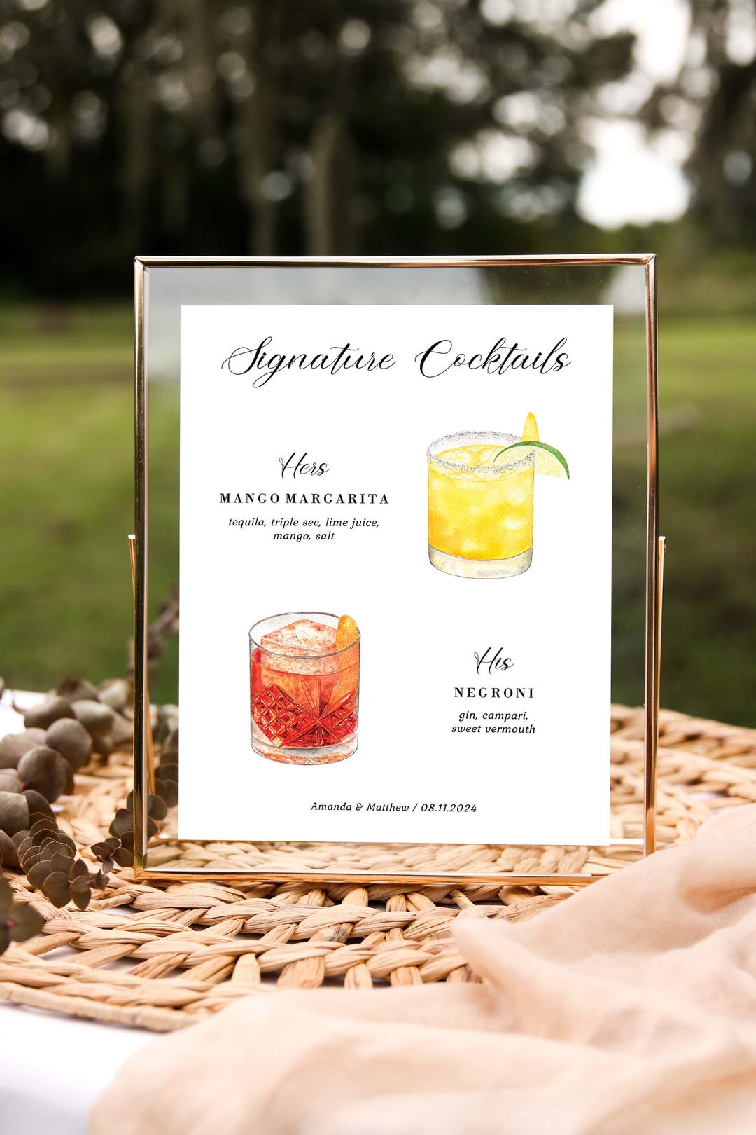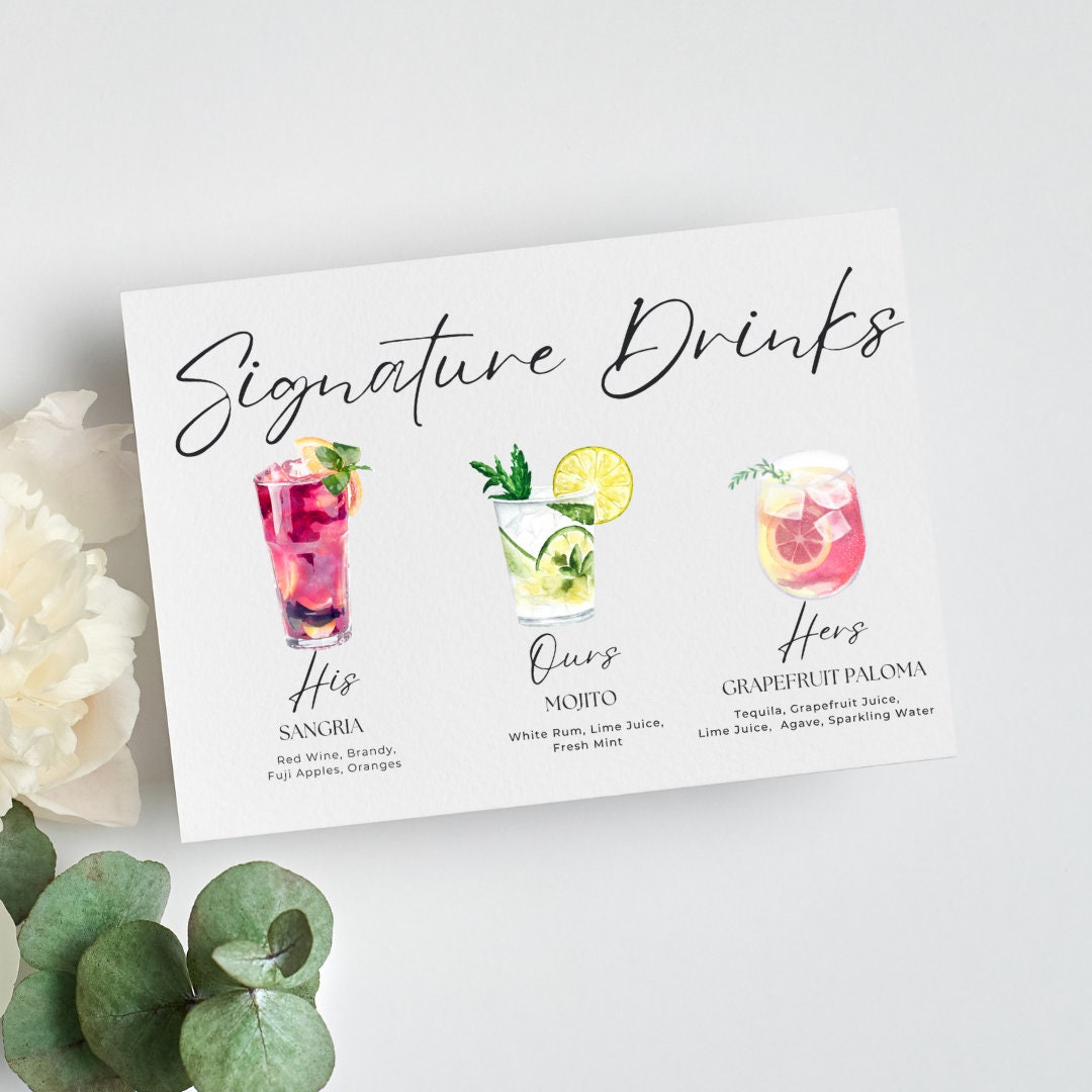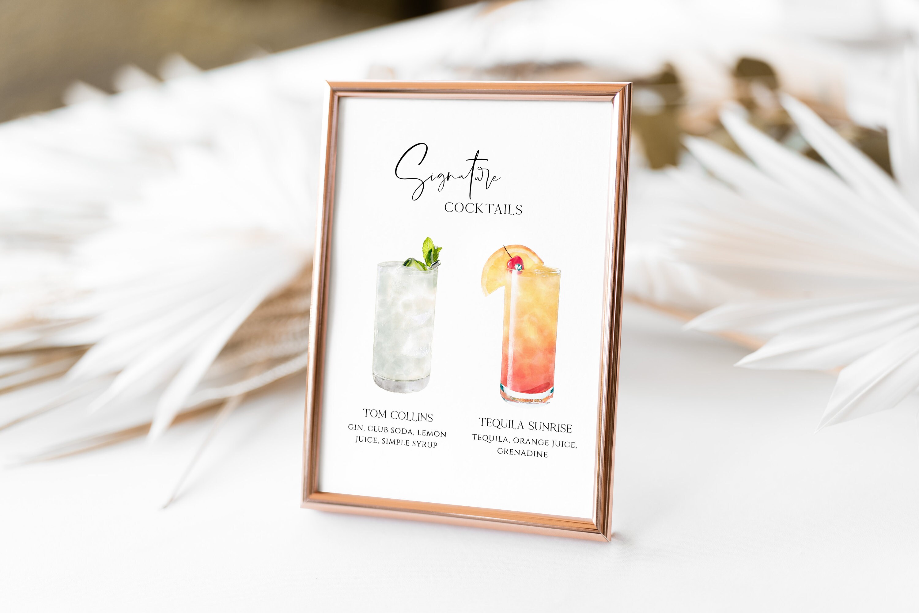 Printable Signature Drink Sign Template Watercolor Signature Cocktails
