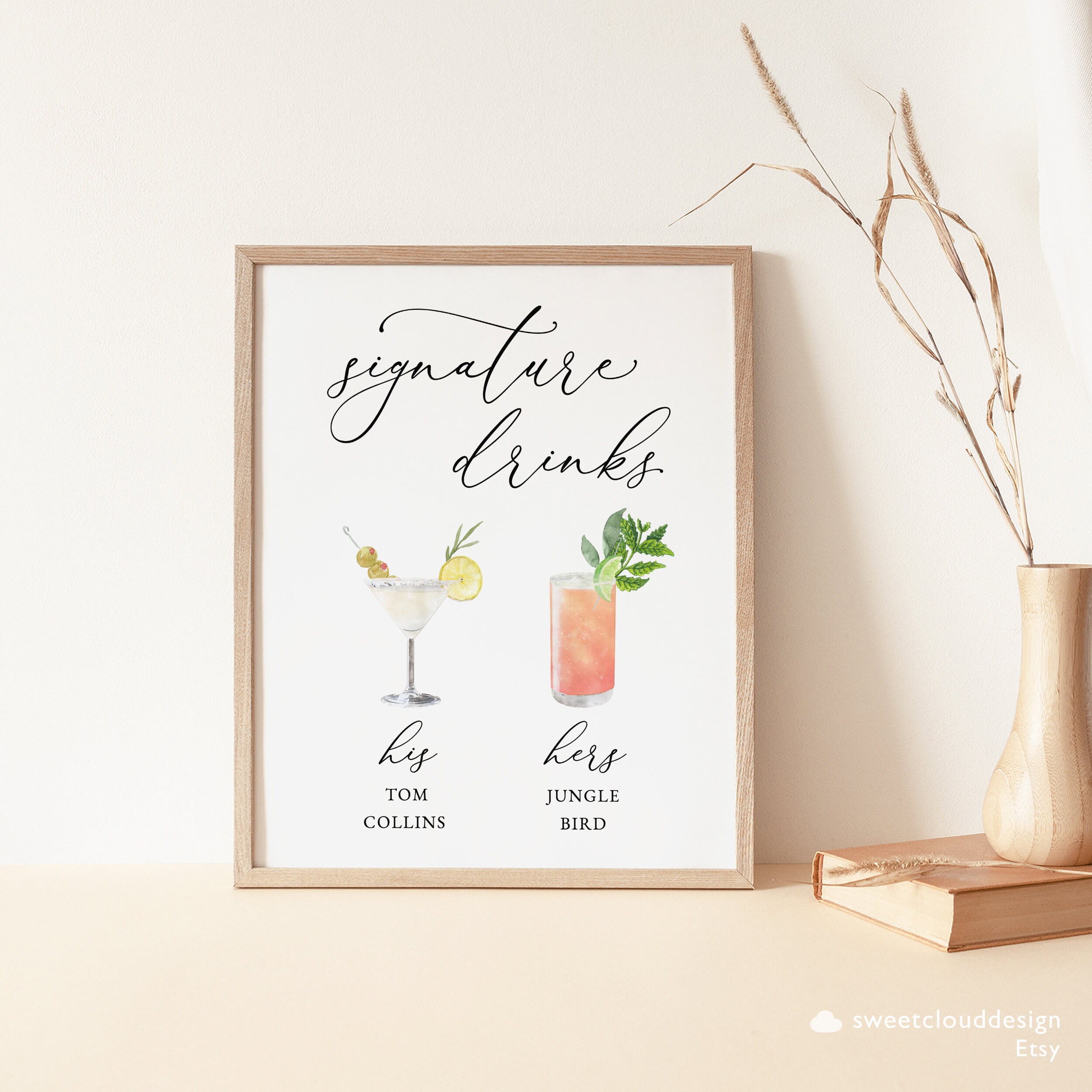 Signature Drinks Sign Template Signature Cocktail Sign Etsy