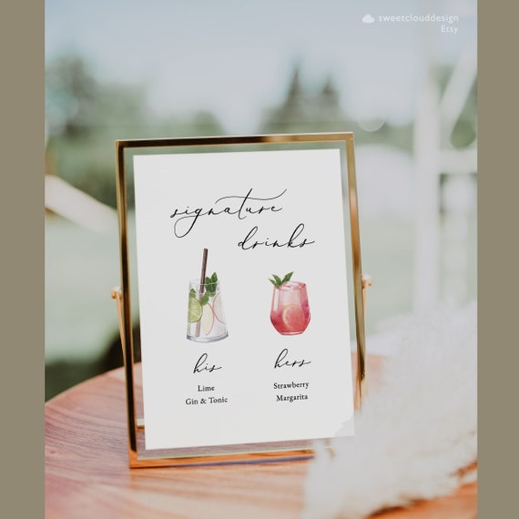 Signature Drink Template Drink Sign for Wedding Modern His and Hers