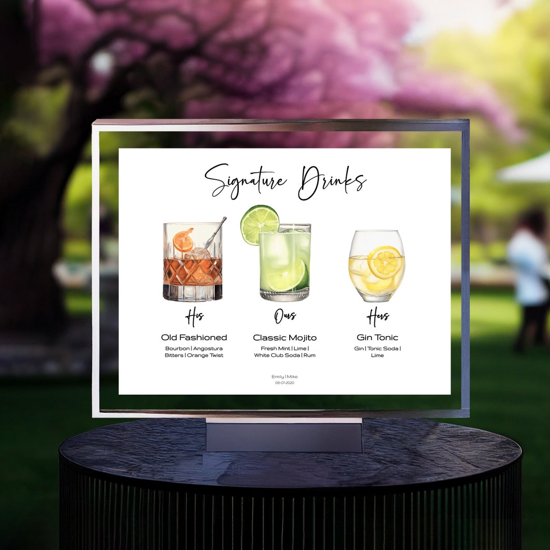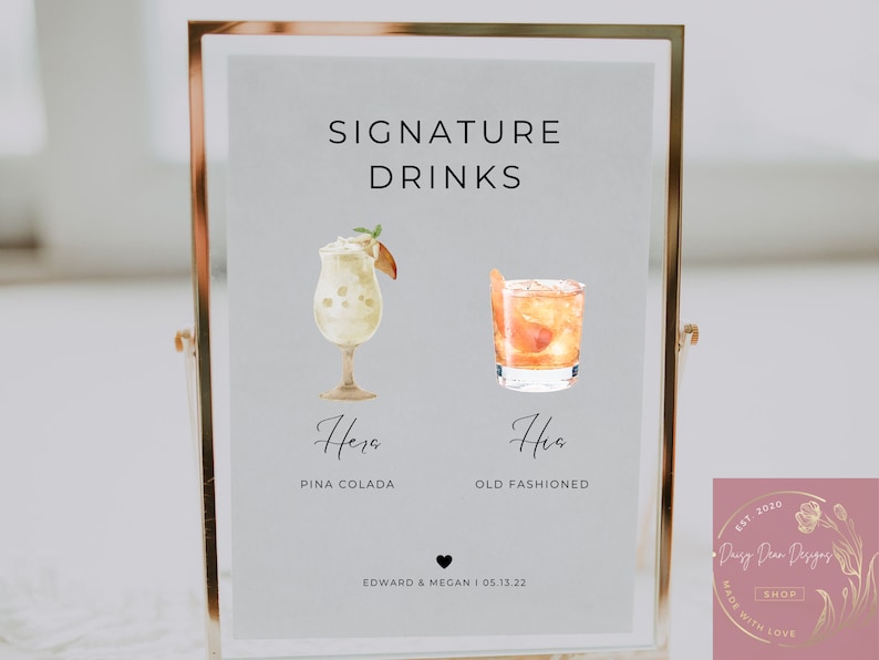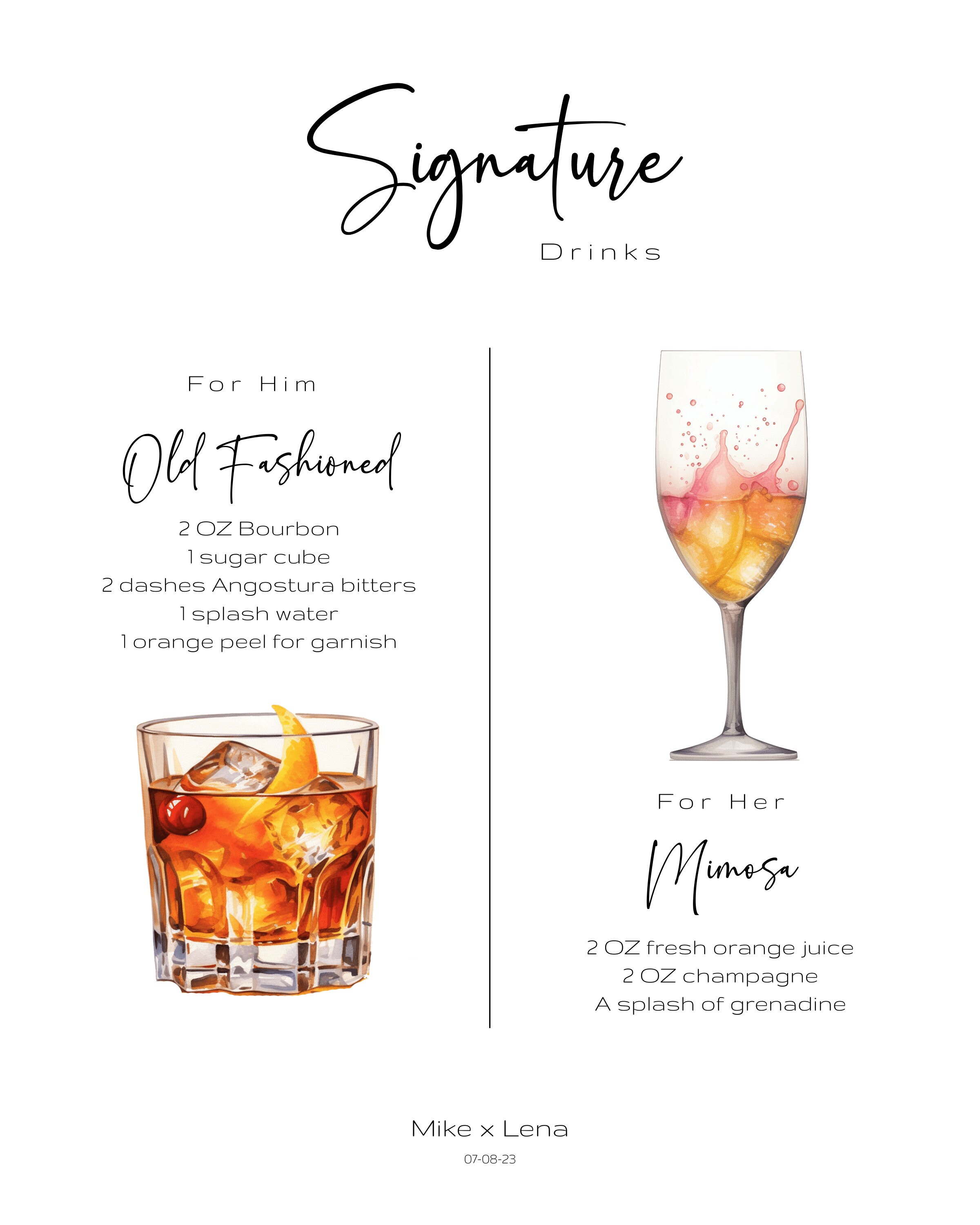 CLASSIC Customizable Signature Drink Sign Template Editable Signature