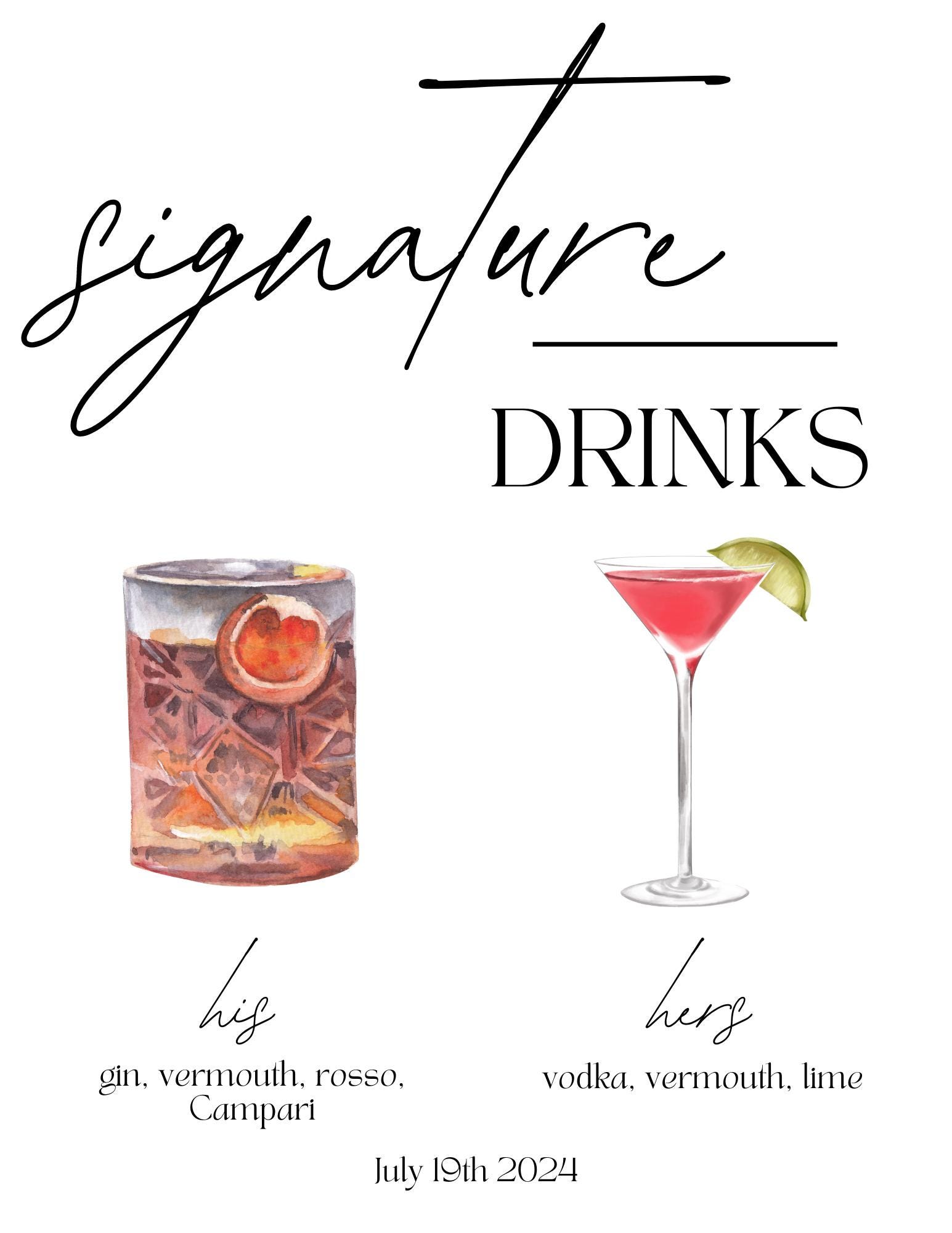 Signature Drink Sign His and Hers Drinks Printable Signature