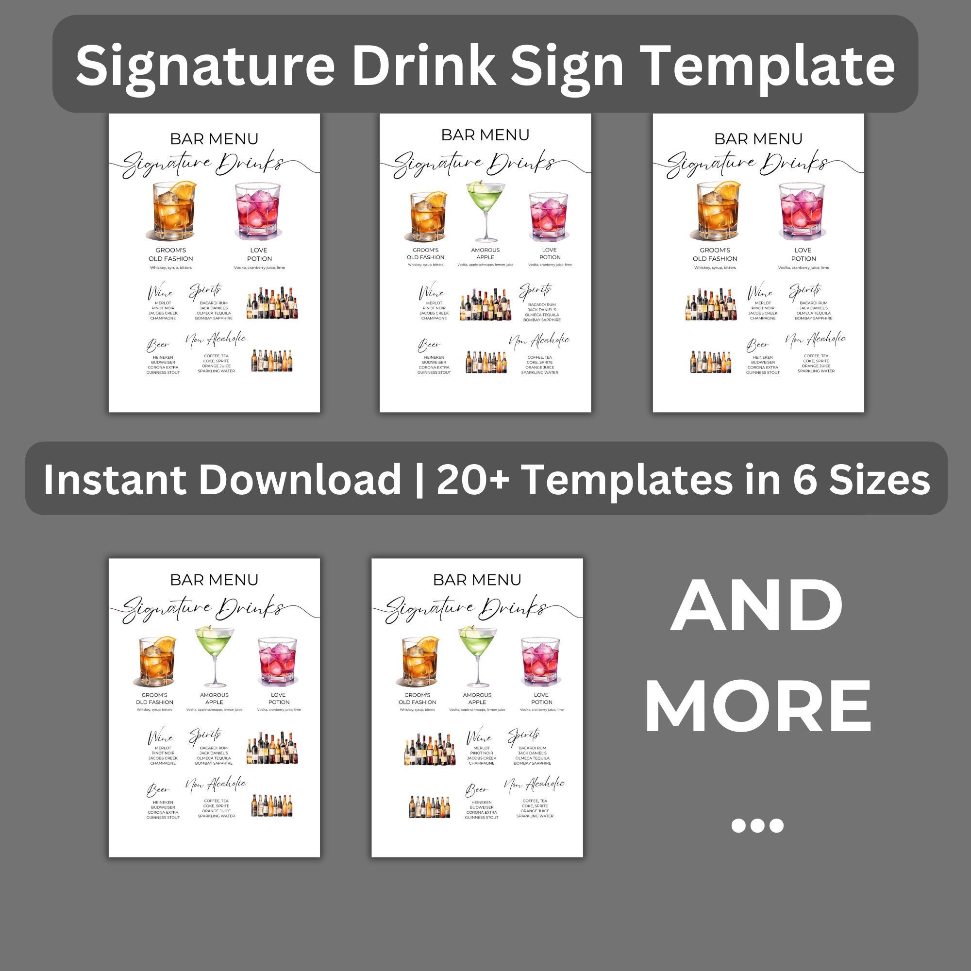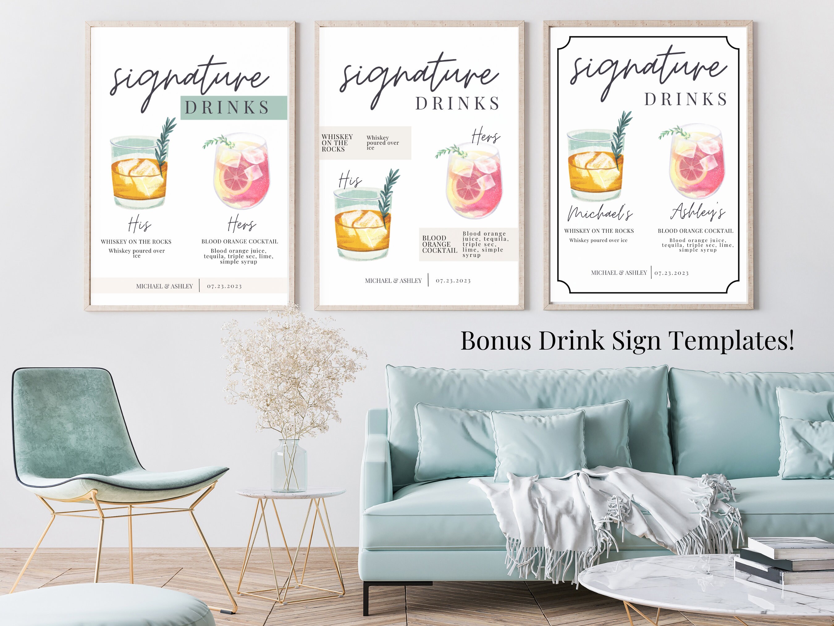 Signature Drink Sign Template 6 TEMPLATES to Choose From Customizable