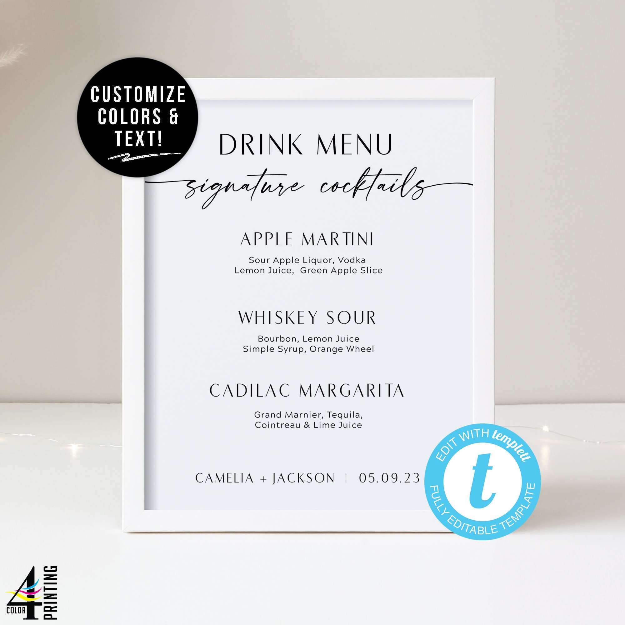 Signature Drink Sign Template Modern Editable Drink Menu Printable