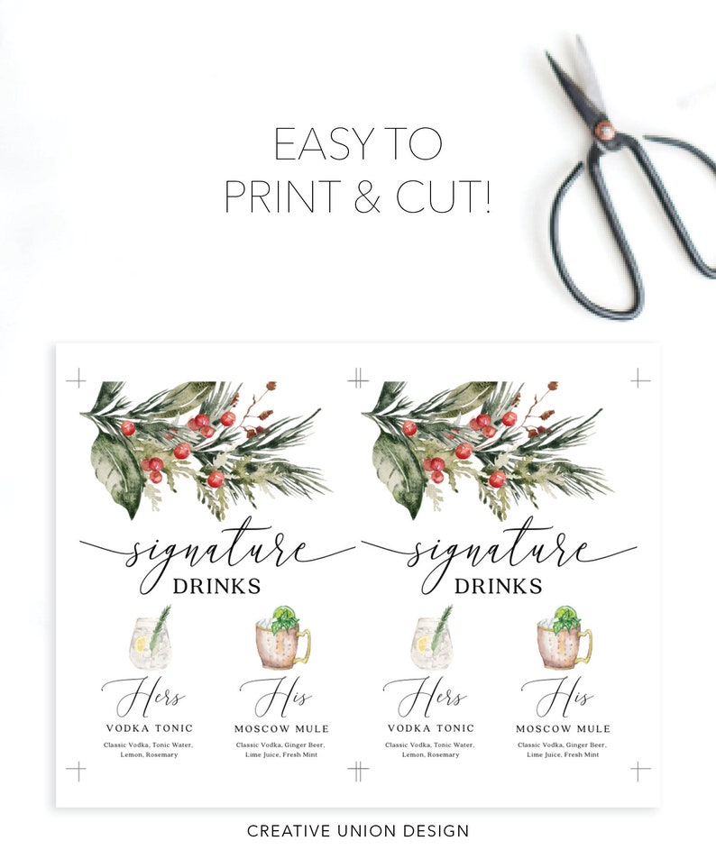 Signature Drink Sign Template Signature Cocktail Sign DIY Signature