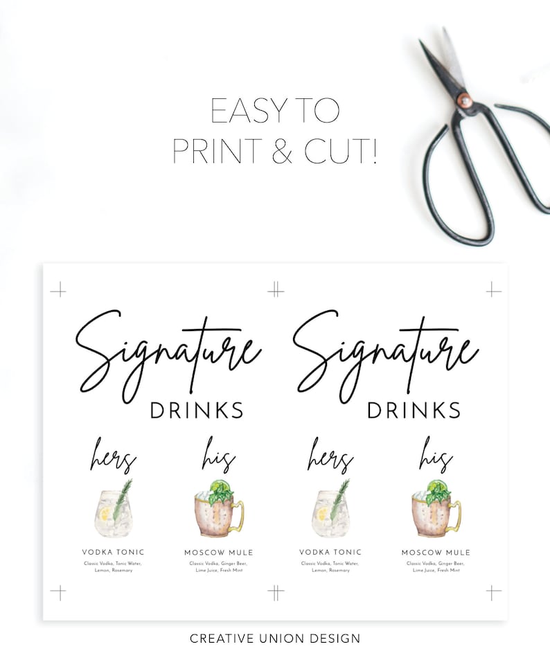 Printable Signature Drinks Sign Template Minimalist His Hers