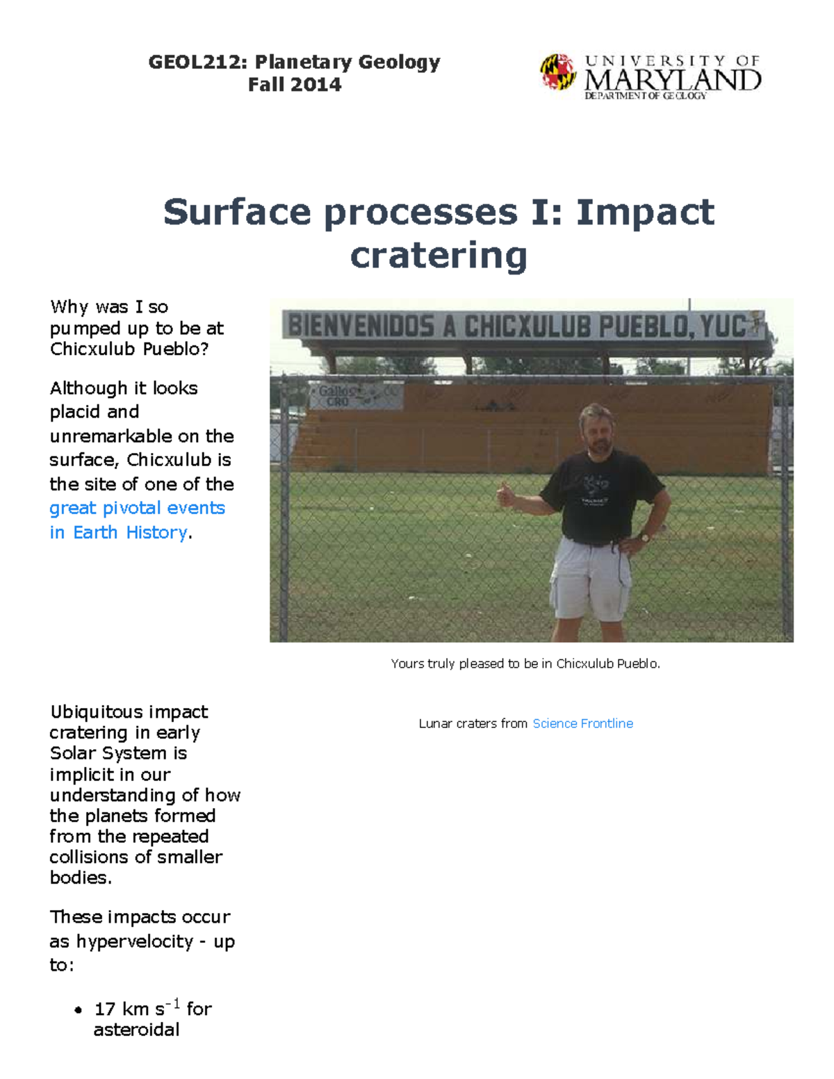 GEOL212: Impact Cratering Processes and Geological Significance Studocu