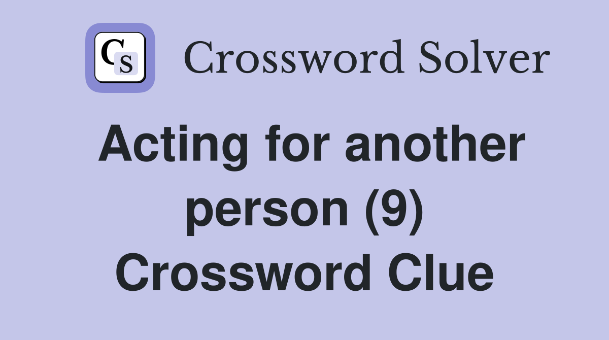 Acting for another person (9) Crossword Clue Answers Crossword Solver