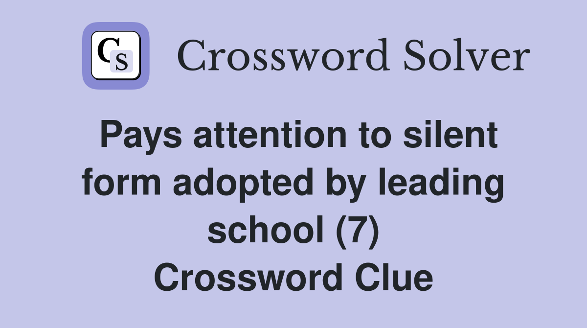 Pays attention to silent form adopted by leading school (7) Crossword