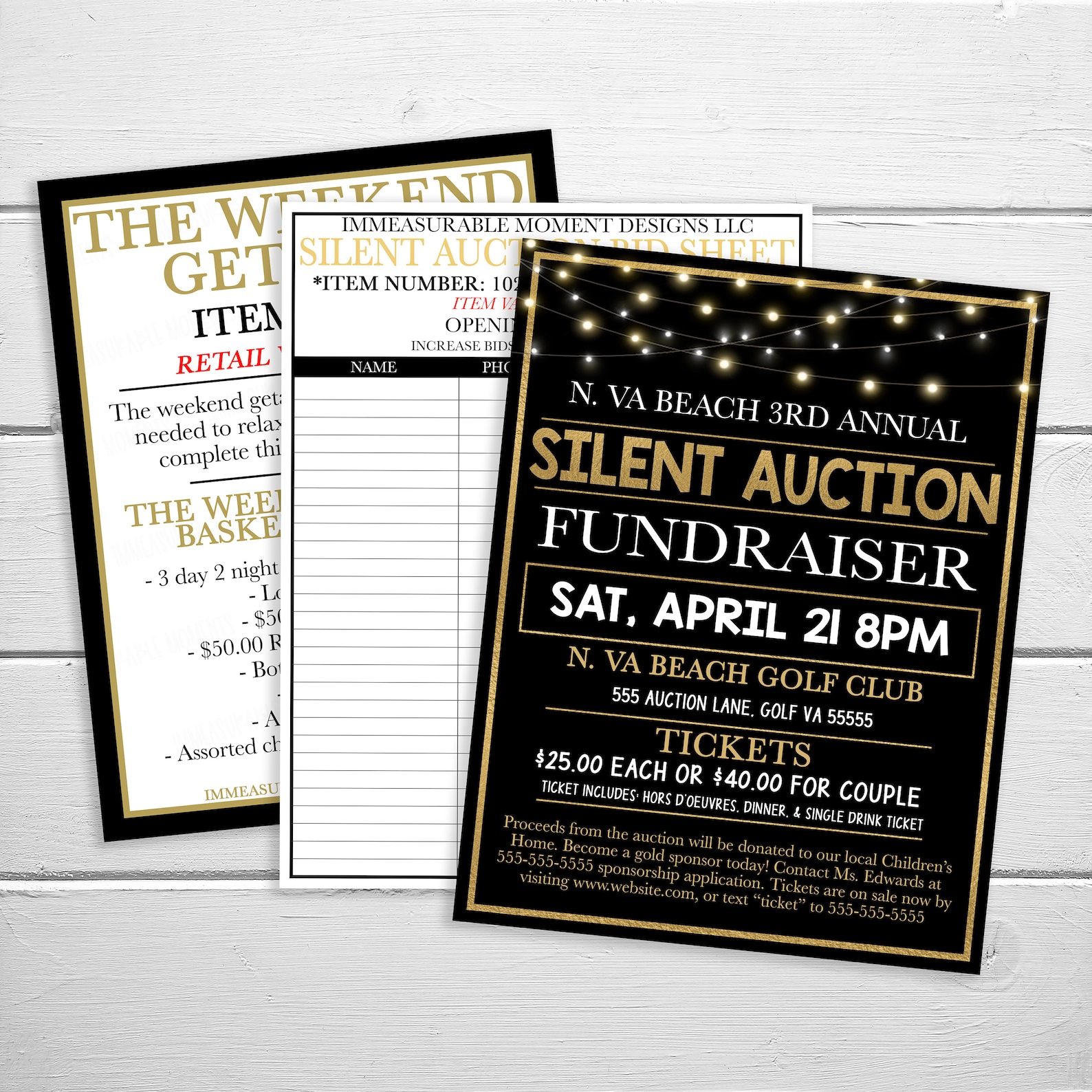 Editable Silent Auction Templates Fundraising Event Sheet Etsy
