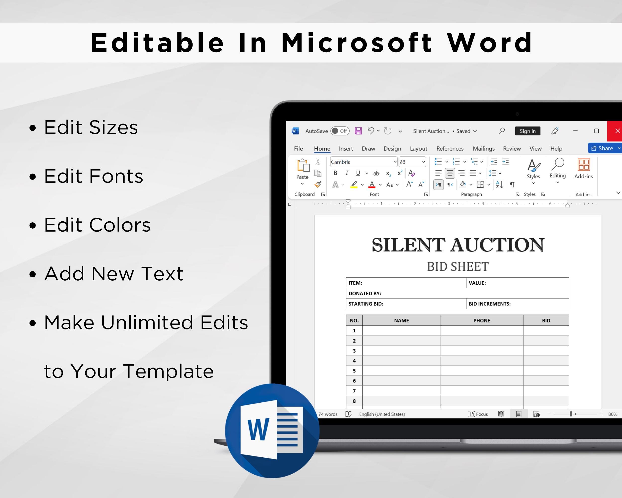 Silent Auction Word Template