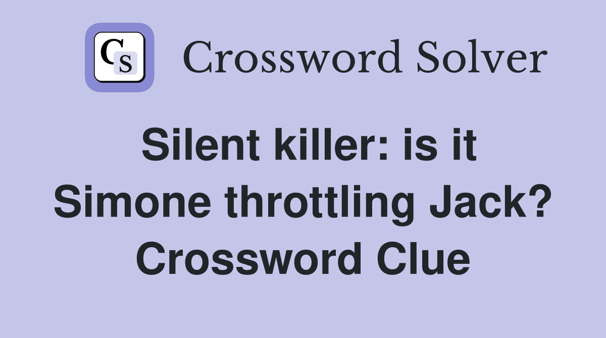 Silent killer: is it Simone throttling Jack? Crossword Clue Answers