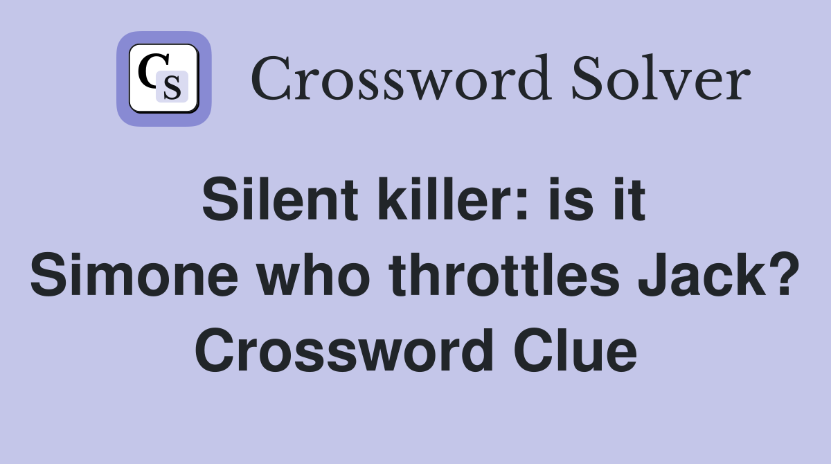 Silent killer: is it Simone who throttles Jack? Crossword Clue