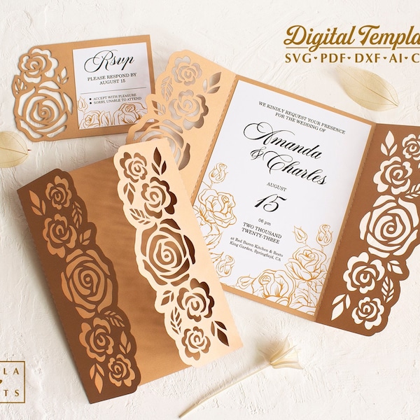 Wedding Card Invitation Template 5x7`` SVG Floral Flower Pattern