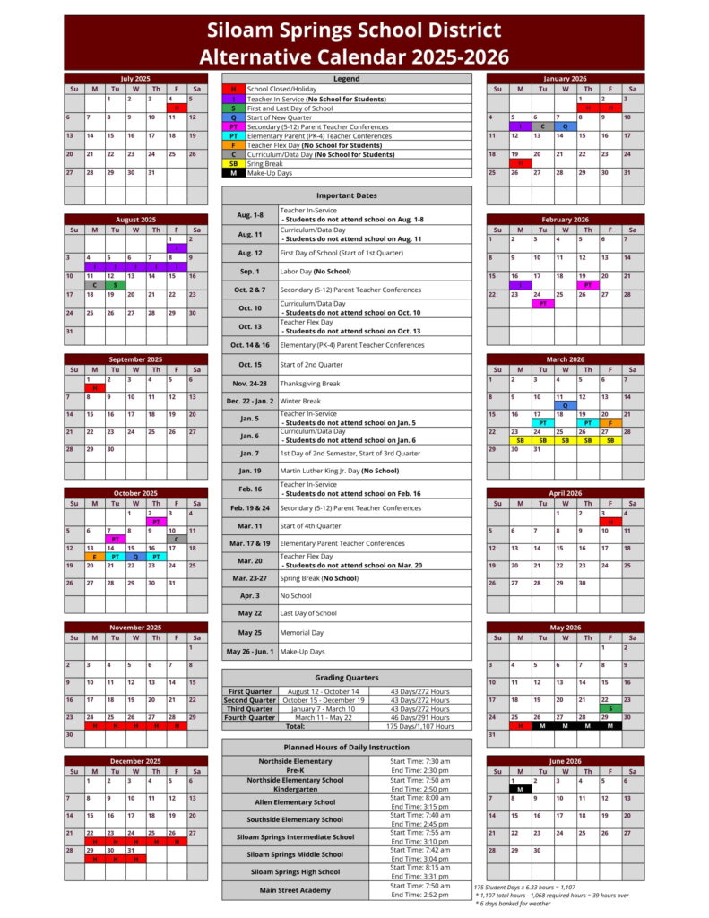 Siloam Springs School District Calendar 25 26 Revised pdf EduCounty