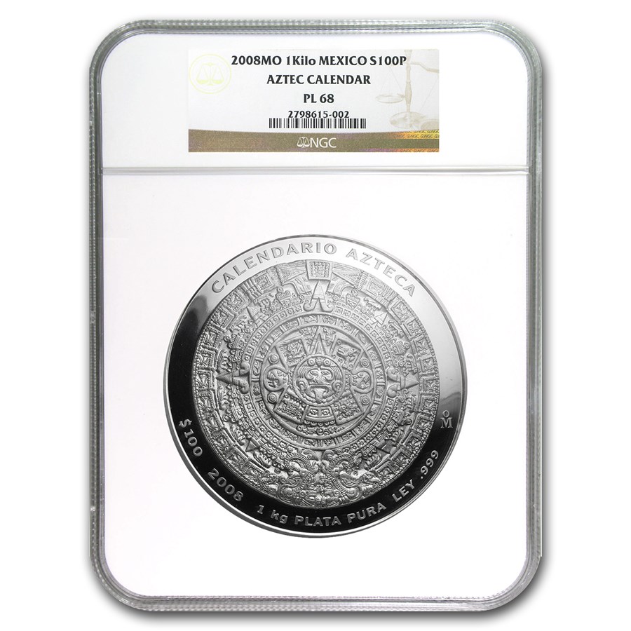 Buy 2008 Mexico 1 kilo Silver Aztec Calendar PF 68 NGC APMEX