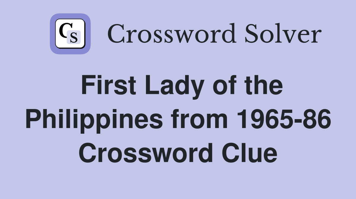 First Lady of the Philippines from 1965 86 Crossword Clue Answers
