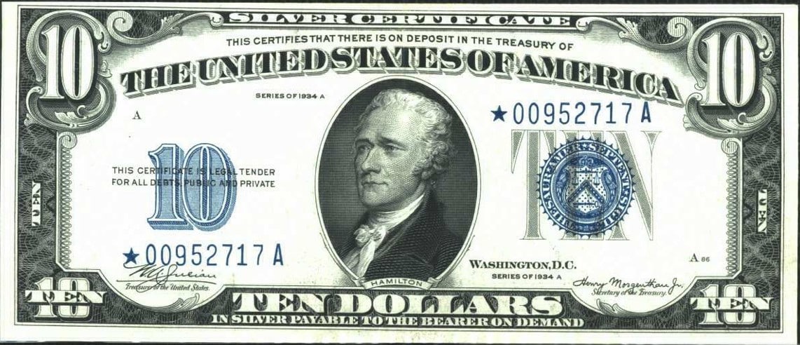 Value of 1934 $10 Silver Certificates Rare Money