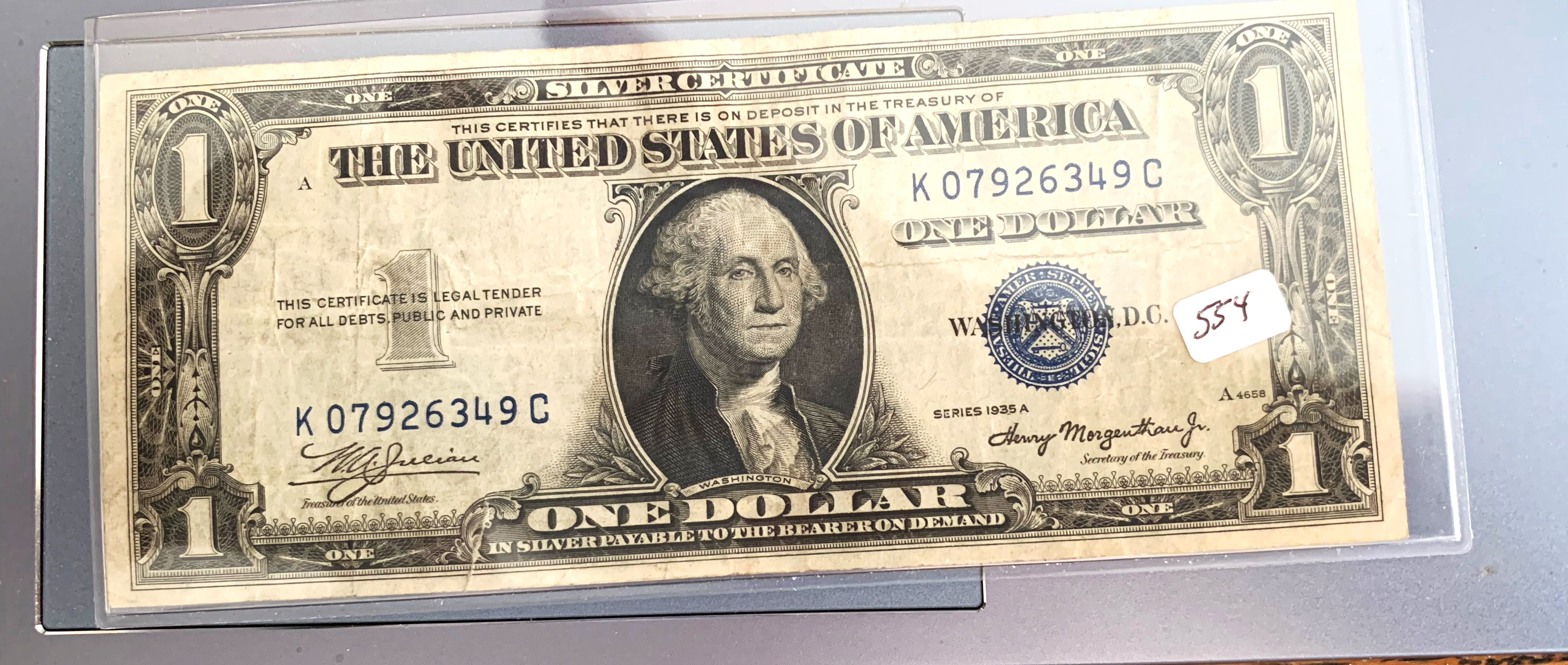 $1 DOLLAR SILVER CERTIFICATE NOTE 1935 A SERIES Property Room