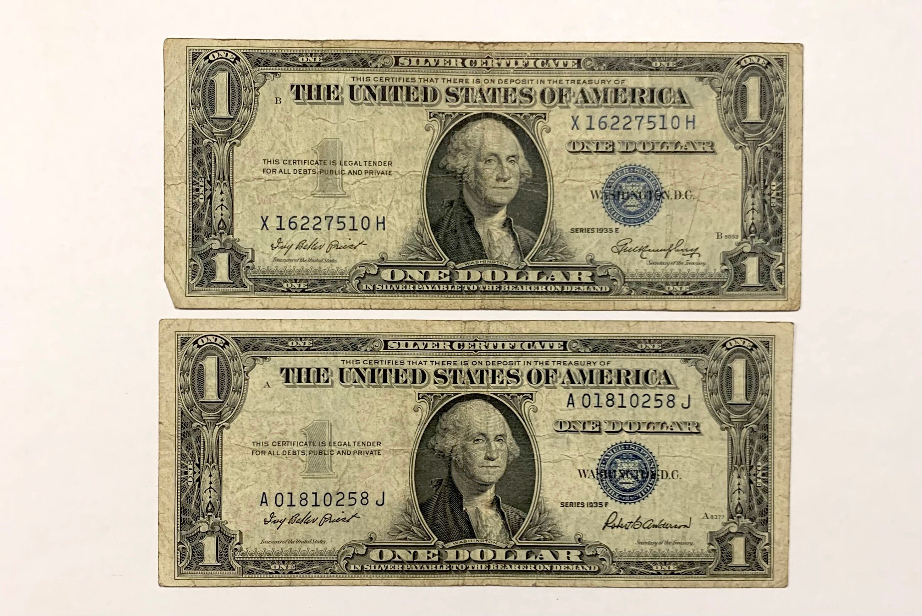 1935 E Silver Certificate One Dollar 2 Pieces Property Room
