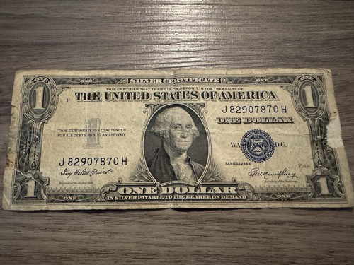 1935 Silver Certificate Blue Seal US Note 1 Dollar Bill OLD US Paper