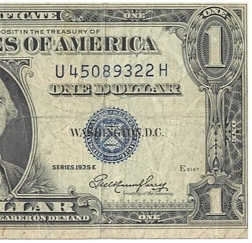 1935 E Silver Certificate Blue Label Seal One Dollar Bill