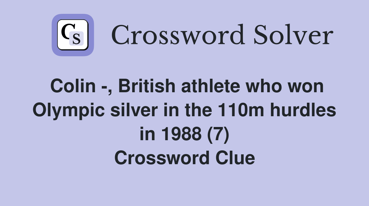 Colin British athlete who won Olympic silver in the 110m hurdles in