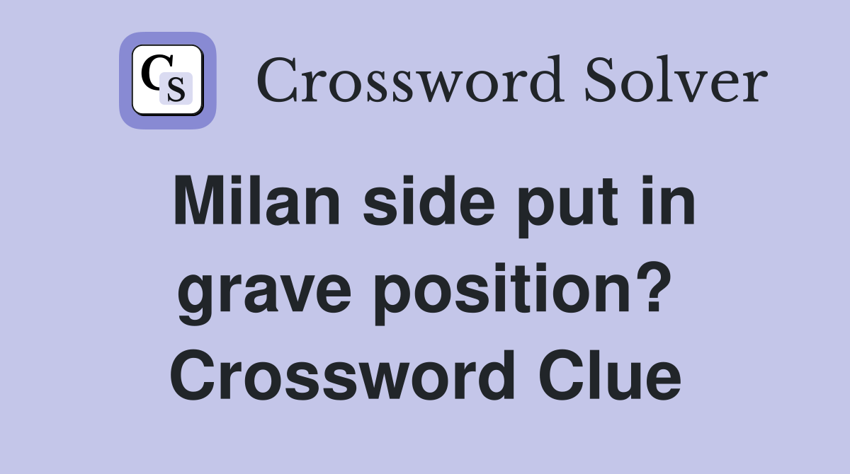 Milan side put in grave position? Crossword Clue Answers Crossword