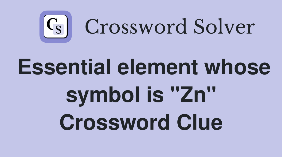 Essential element whose symbol is quot Zn quot Crossword Clue Answers