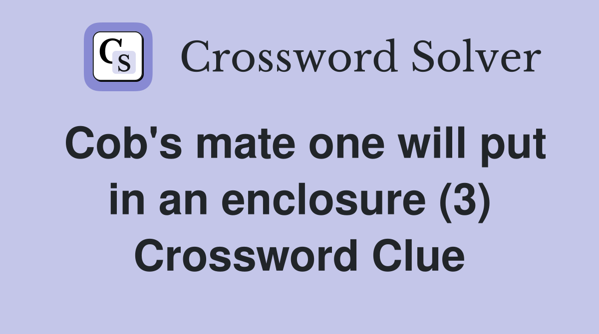 Cob #39 s mate one will put in an enclosure (3) Crossword Clue Answers