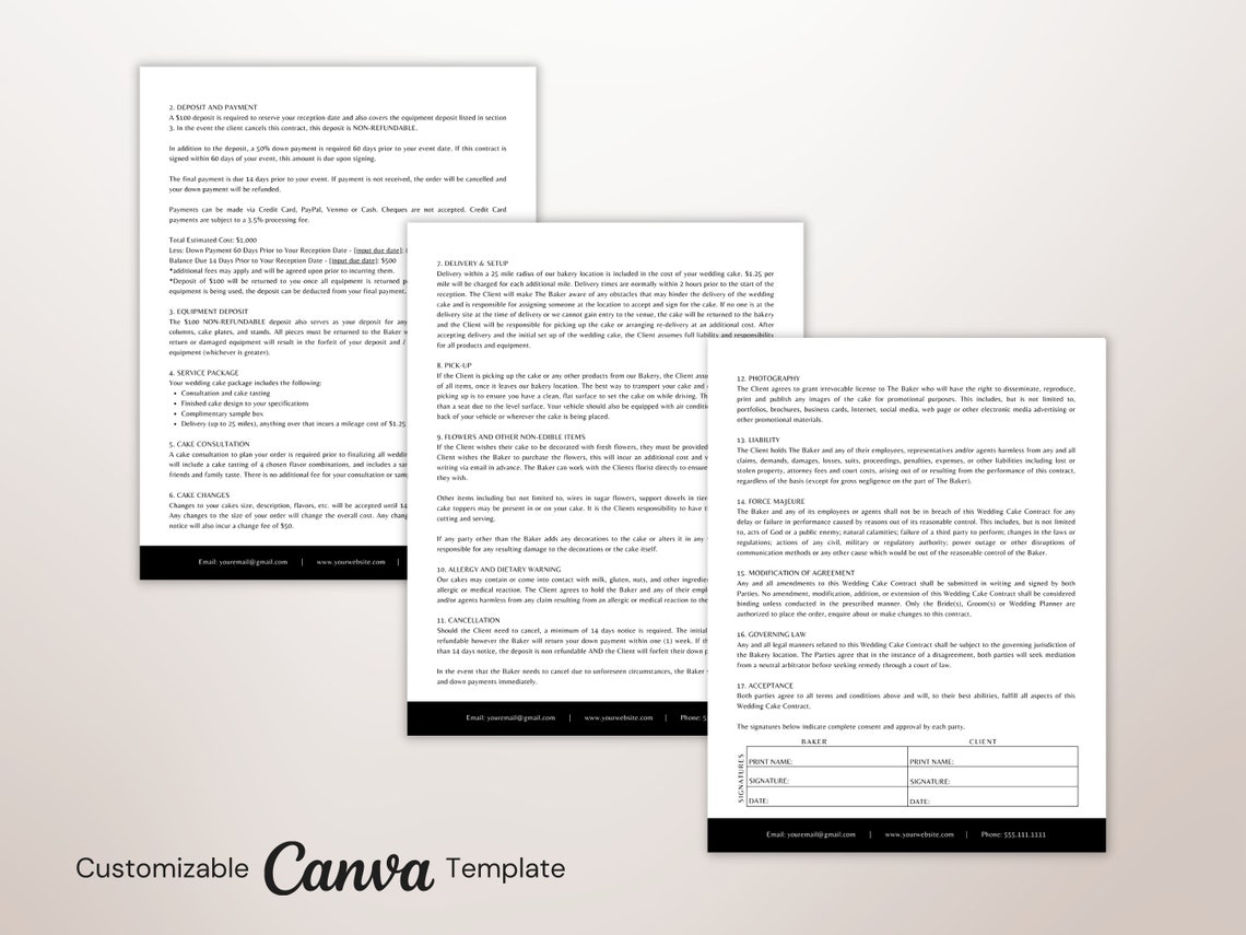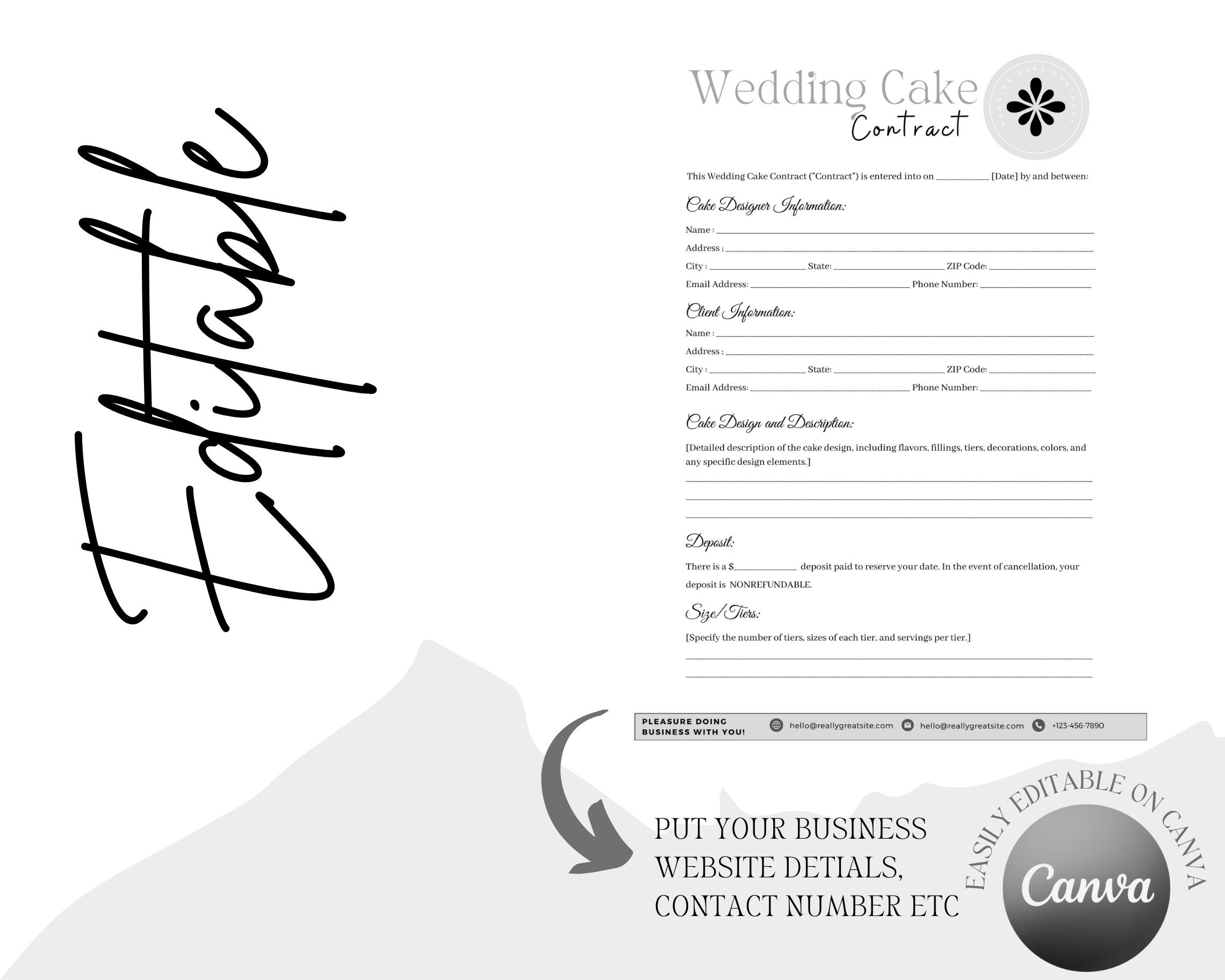 Wedding Cake Contract Template Edit in Canva Contract for Baker