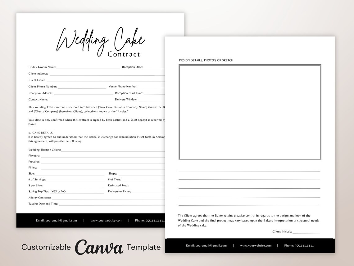 Wedding Cake Contract Template Edit in Canva Contract for Etsy Canada