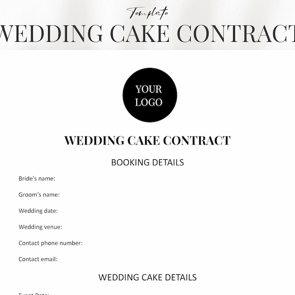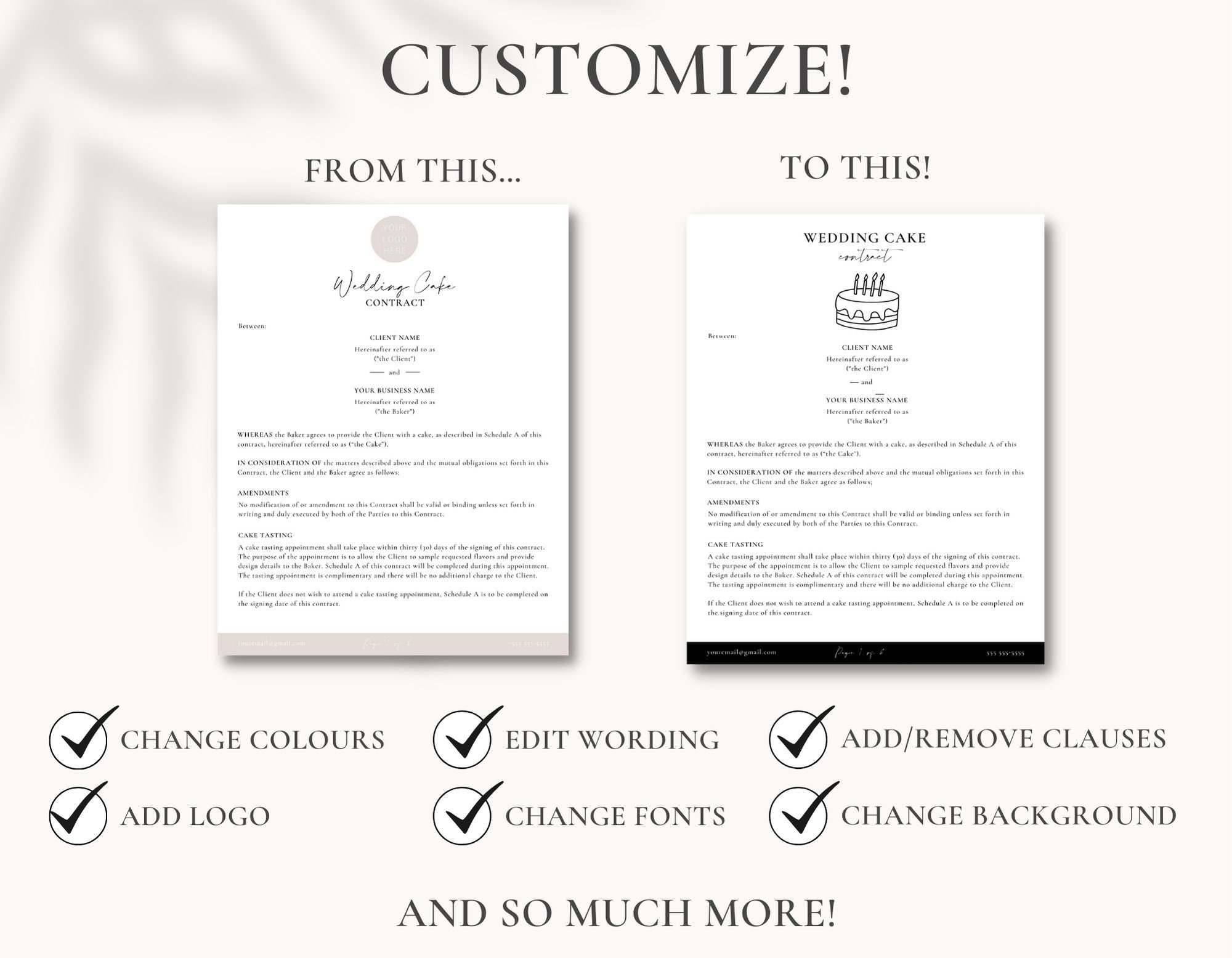 Editable Wedding Cake Contract Template Wedding Cake Etsy