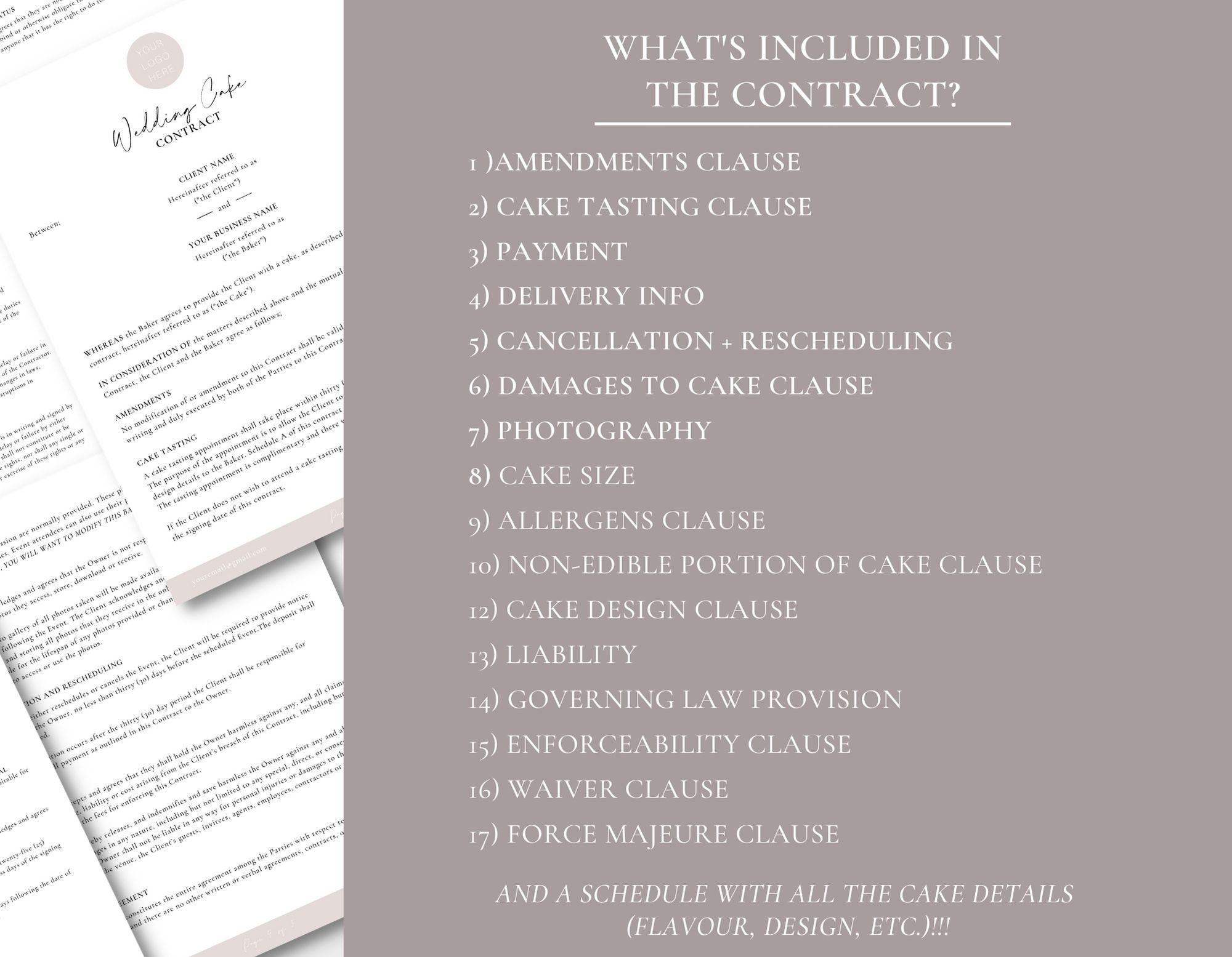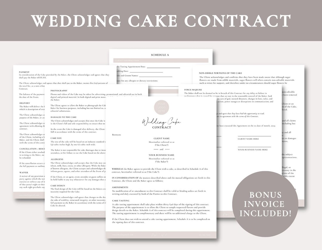 Wedding Cake Contract Template Editable Bakery Client Terms and