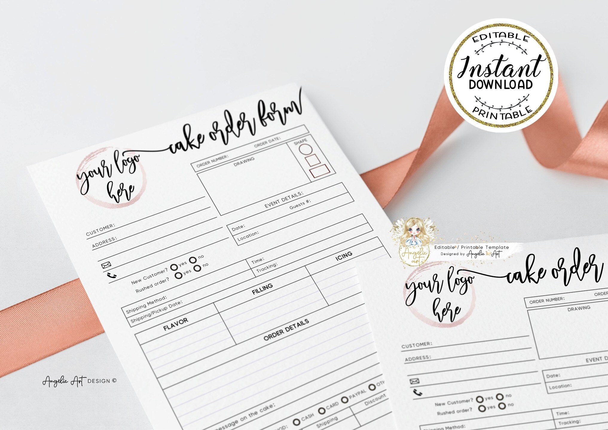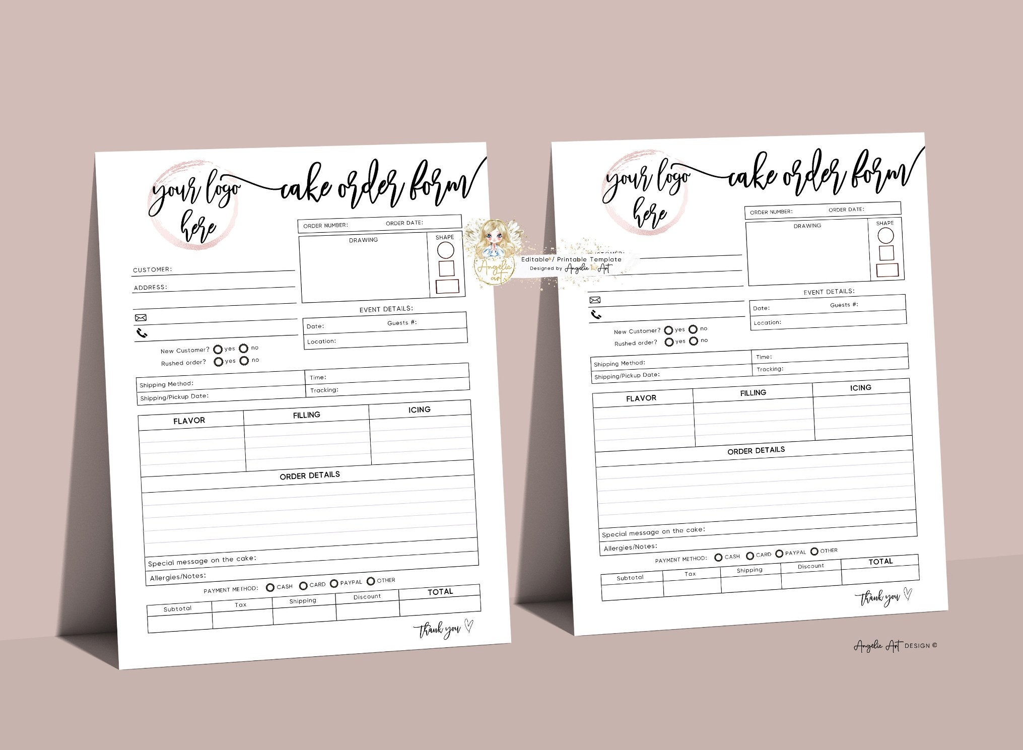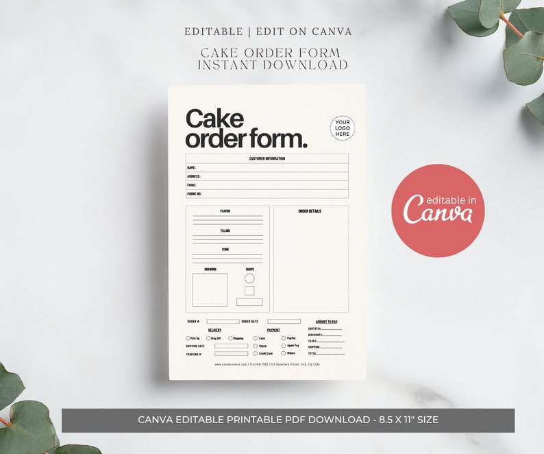 Cake Order Form Template Digital and Easy Editable in Canva Cake