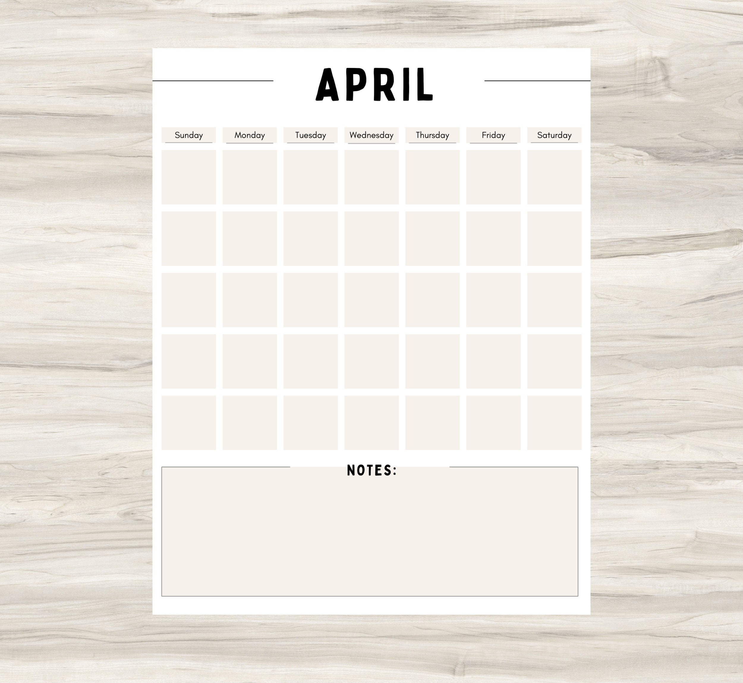 Monthly Blank Calendar Simple Calendar Calendar Planner Etsy