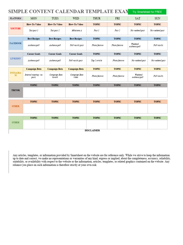 Free Content Calendar Templates and Examples Smartsheet
