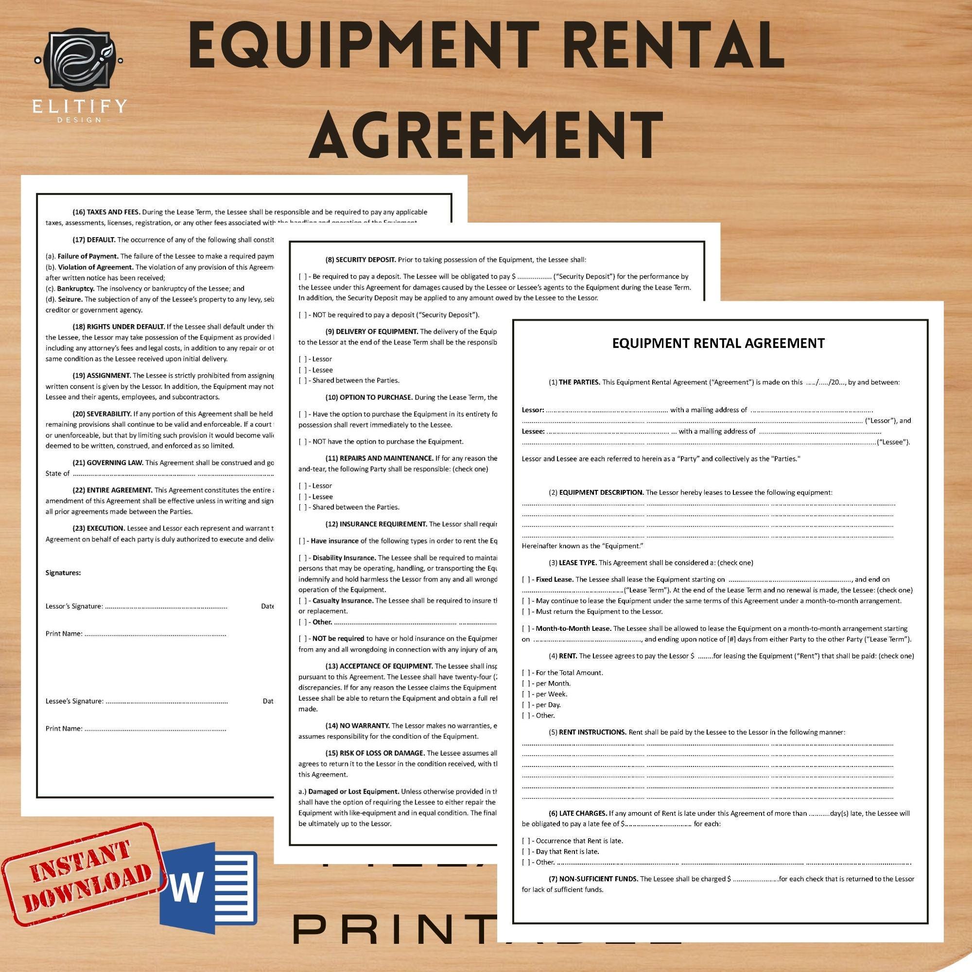 Equipment Rental Agreement Template DIY Editable Contract Forms