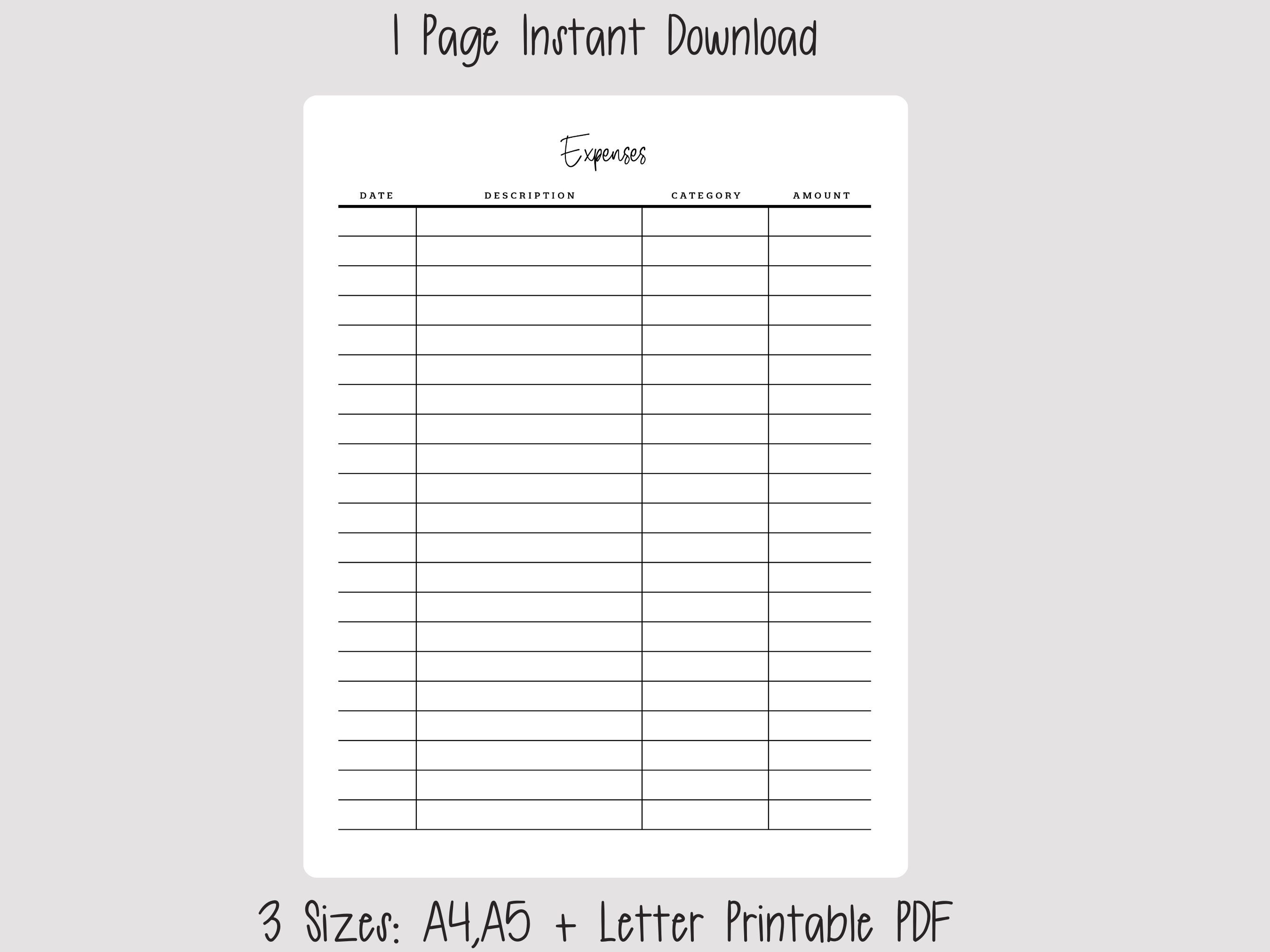 Expense Tracker Printable Instant Digital Download Minimalist Etsy