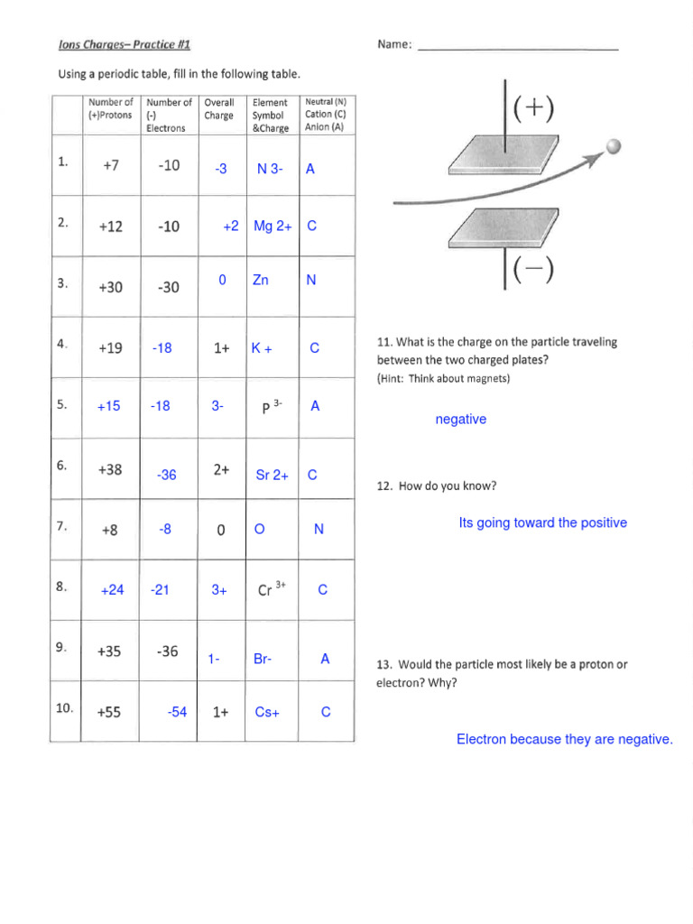 Ion Worksheet with Answers Science 7th Grade Worksheets Library