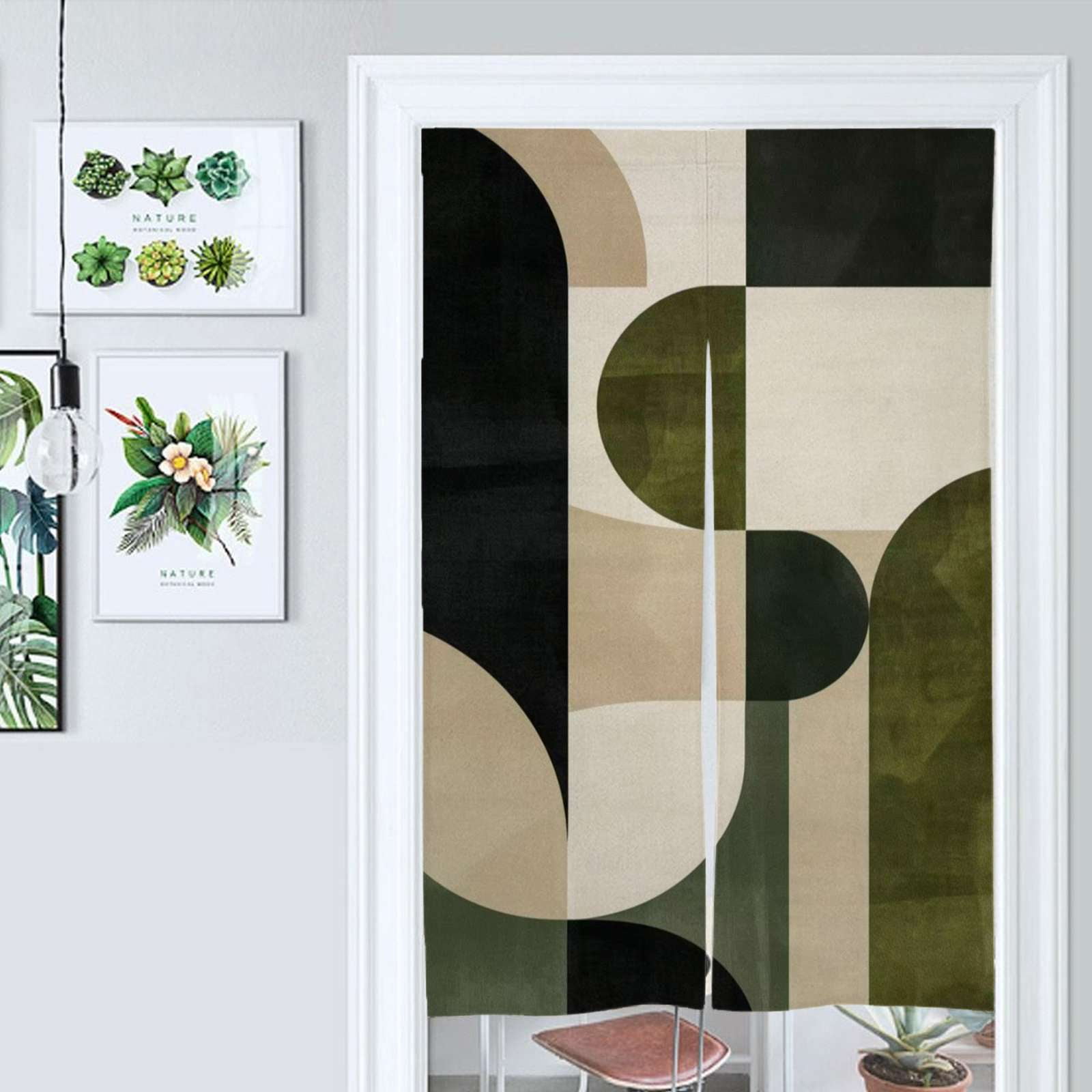 Simple Shapes Sage Green Beige Geometric Door Curtain Nordic Living