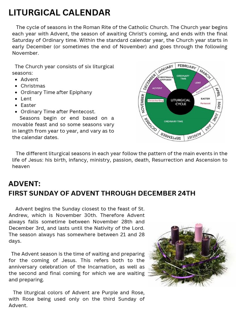 Liturgical Calendar PDF Liturgical Year Advent