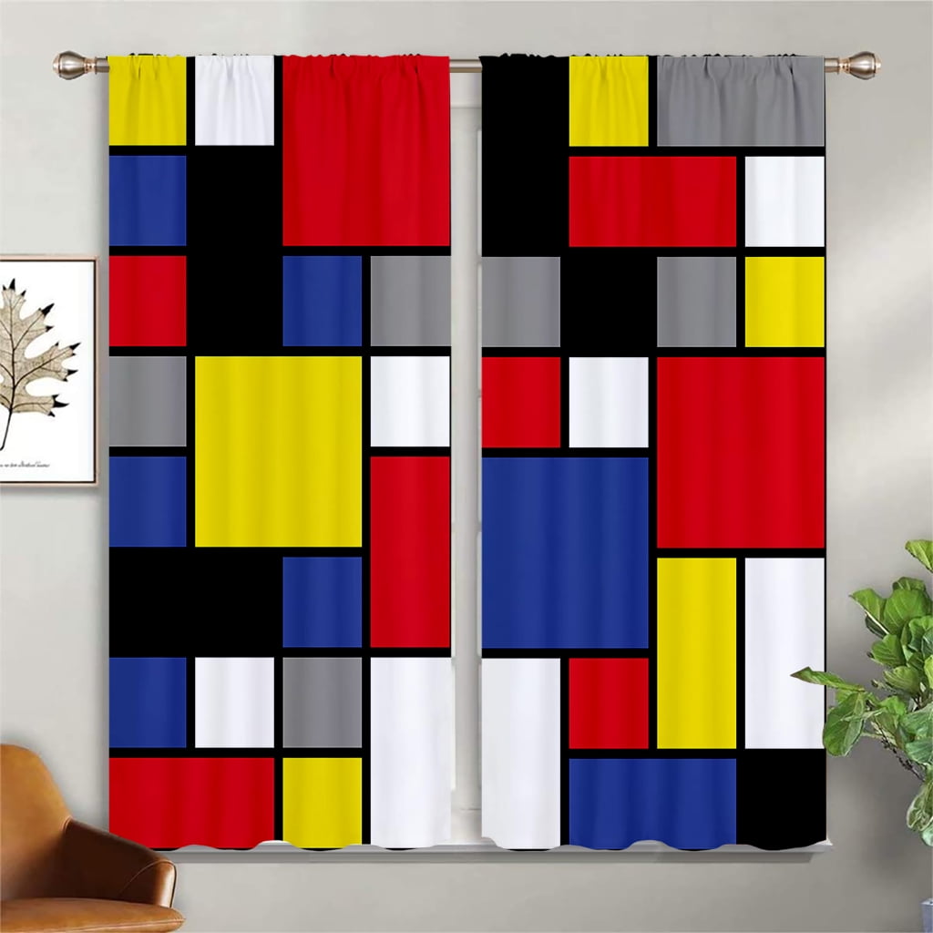 3D Printed Curtains with Colorful Plaid Pattern Modern Simple Curtains