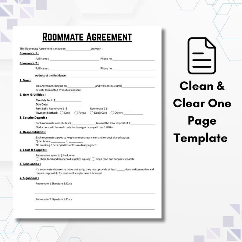 Simple roommate agreement Artofit