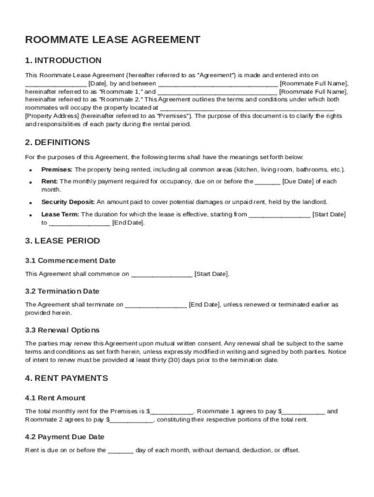 Roommate Lease Agreement Template: Fill out sign online DocHub