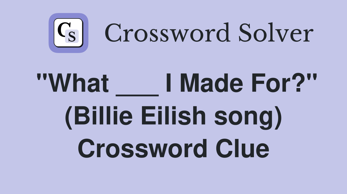 quot What I Made For? quot (Billie Eilish song) Crossword Clue Answers