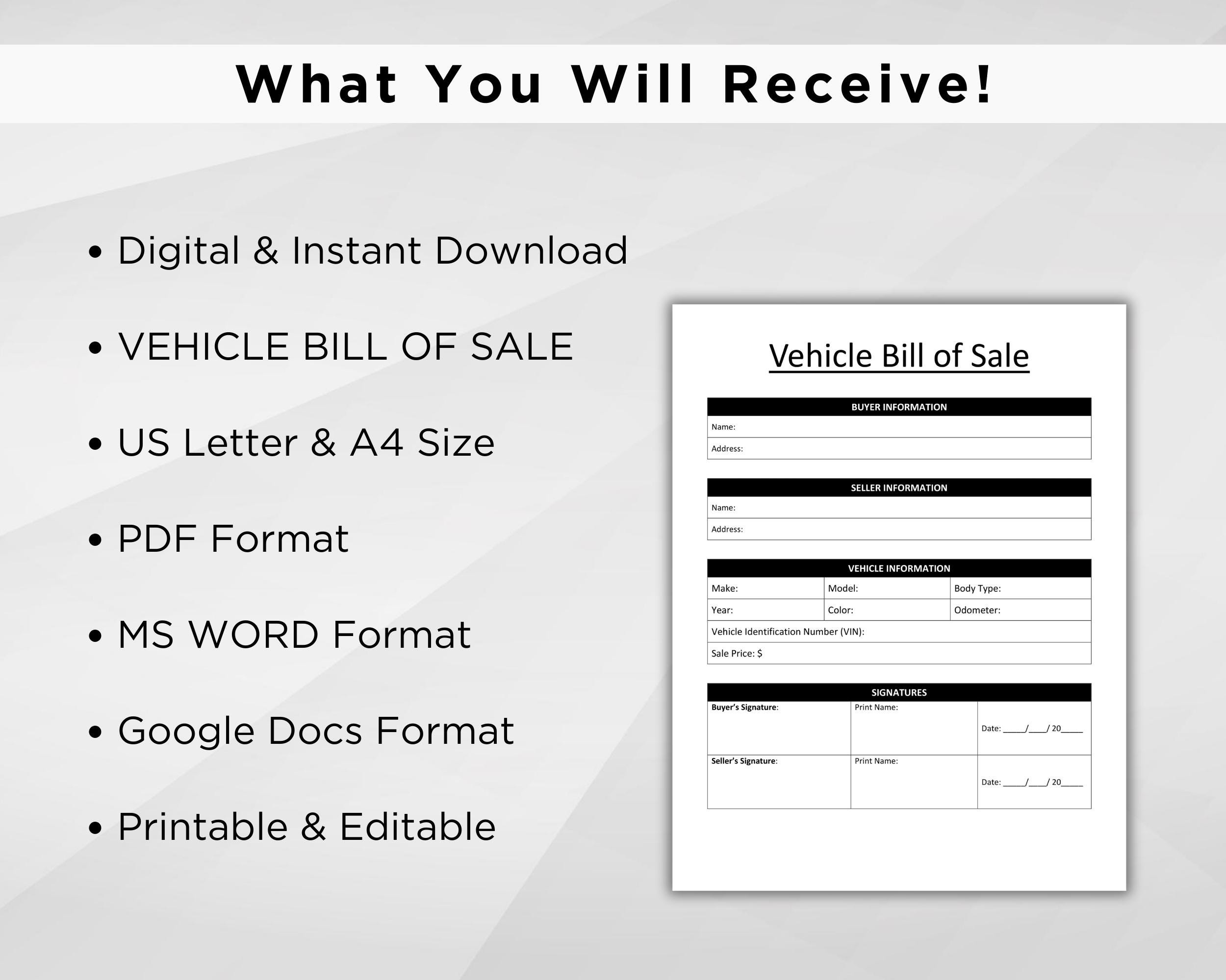 Vehicle Bill of Sale Template 14 Free Word PDF Document Downloads