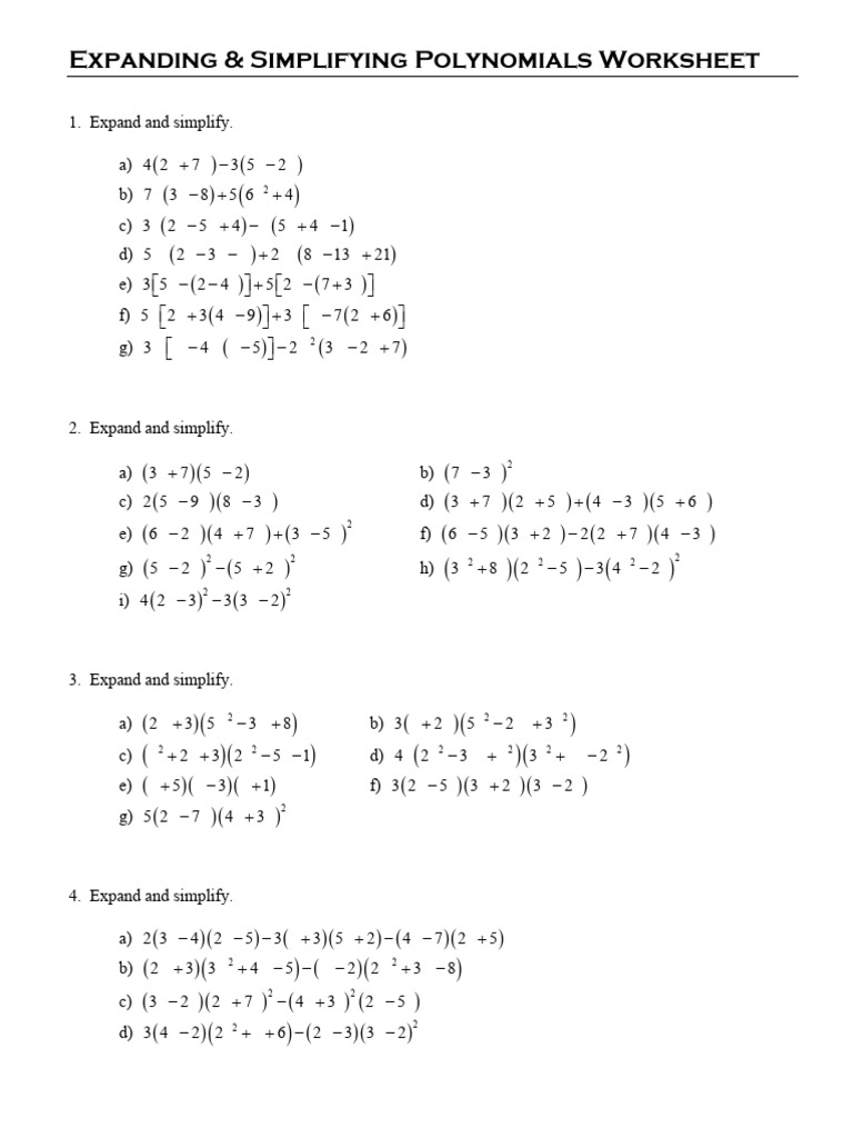 11 Expanding and Simplifying Polynomials Worksheet PDF