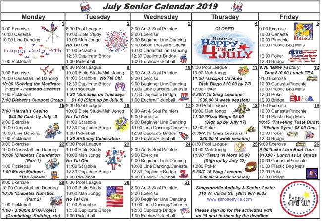 Simpsonville Activity Senior Center Calendar The Simpsonville Sentinel