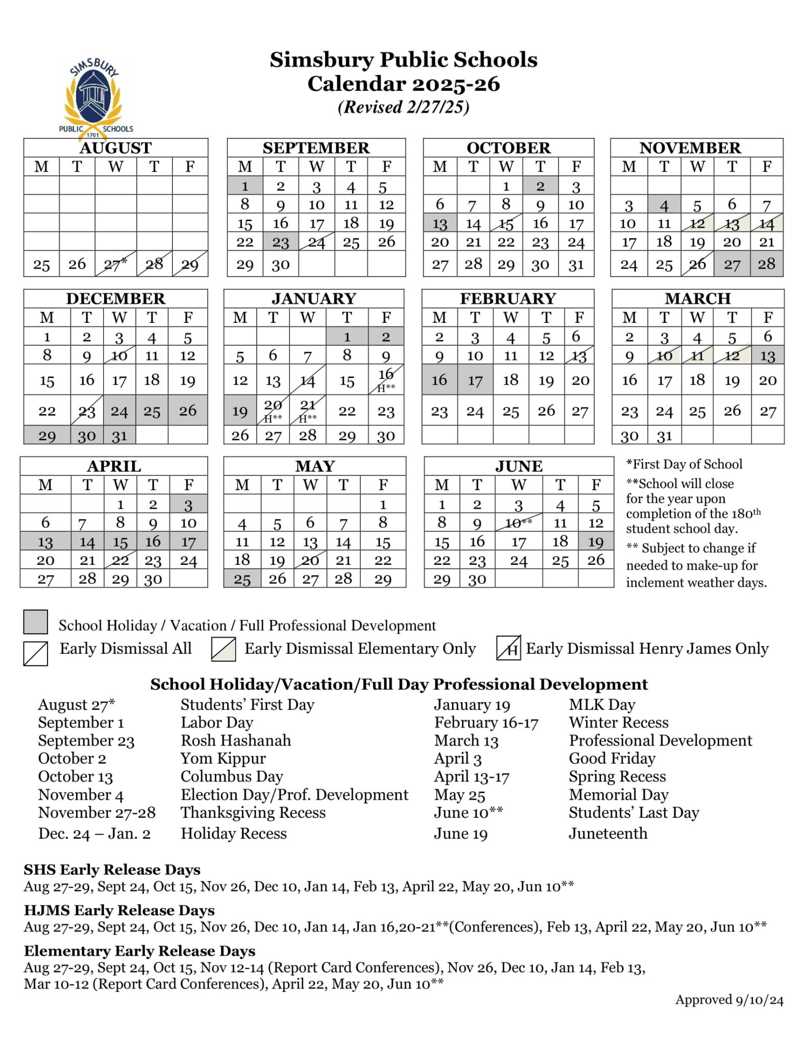 Simsbury #39 s School Calendar For 2024 25: Key Dates To Know Simsbury